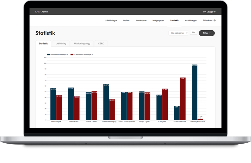 Tracking and reporting are central features of our LMS, giving full visibility into courses, compliance, and risk. All activity is logged and timestamped — from assignment to completion — providing clear traceability and a complete record for audits and follow-ups.